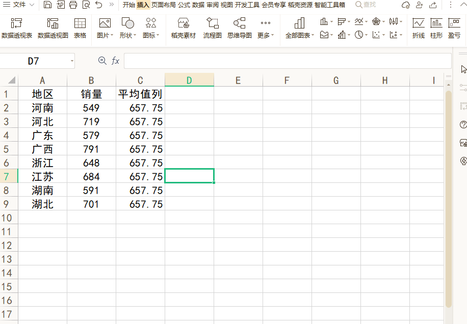 首先,我们新增一列平均值数列。(平均值的计算可使用AVERAGE函数)