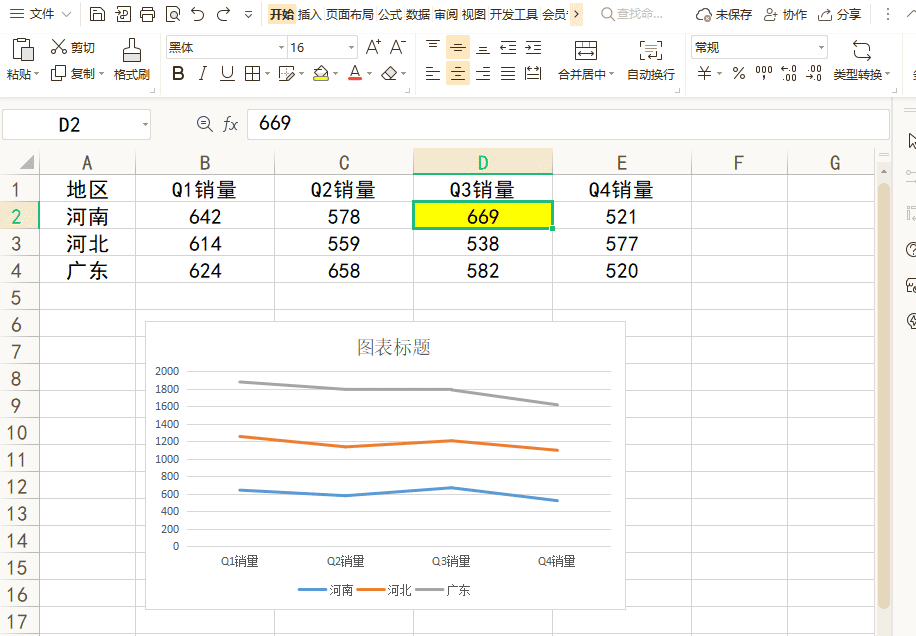 此时将「堆积折线图」更改为「折线图」就可以解决。
